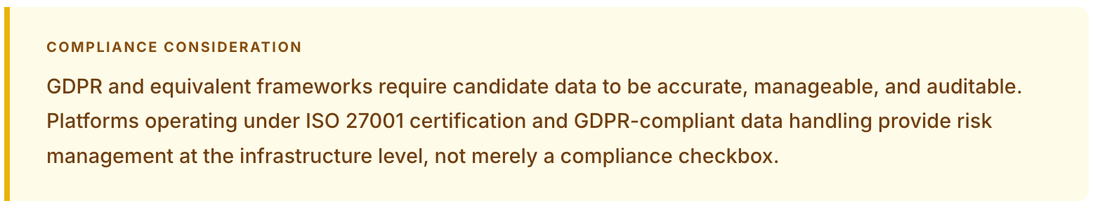 Each of these criteria addresses a different layer of the same question: whether the extraction layer in a given recruitment technology stack is reliable enough to serve as the foundation for the decisions built on top of it. Accuracy benchmarking reveals the real-world performance gap between demo conditions and production pipelines. ATS integration depth determines whether structured data flows correctly into the fields that search and match depend on. Human review touchpoints are the mechanism through which intelligent human-in-the-loop recruitment AI delivers its reliability premium over fully automated extraction. And compliance infrastructure is increasingly non-negotiable for agencies operating across multiple jurisdictions.